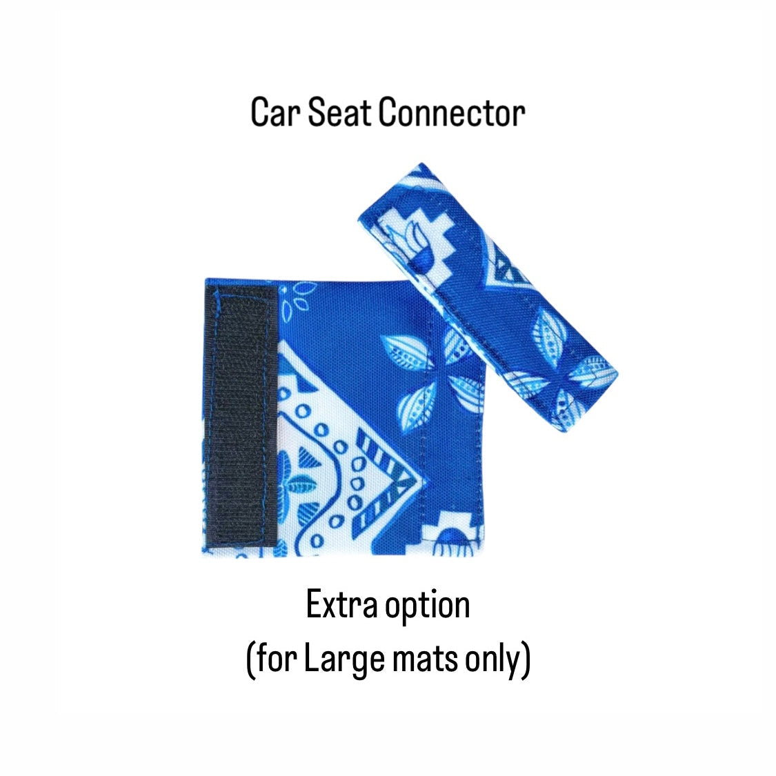 Car Seat Connector (extra option): The car seat connectors enable you to fasten the two straps of the travel mats behind a car seat head rest with ease (see video in images). This will turn your trusty travel mat into an upright car seat cover! It will provide your dog with padded comfort while being waterproof and washable. They work best with large size travel mats as the large mats cover more of the seat. When you're not using it, pop it on the handle of your travel mat so you'll never lose it!