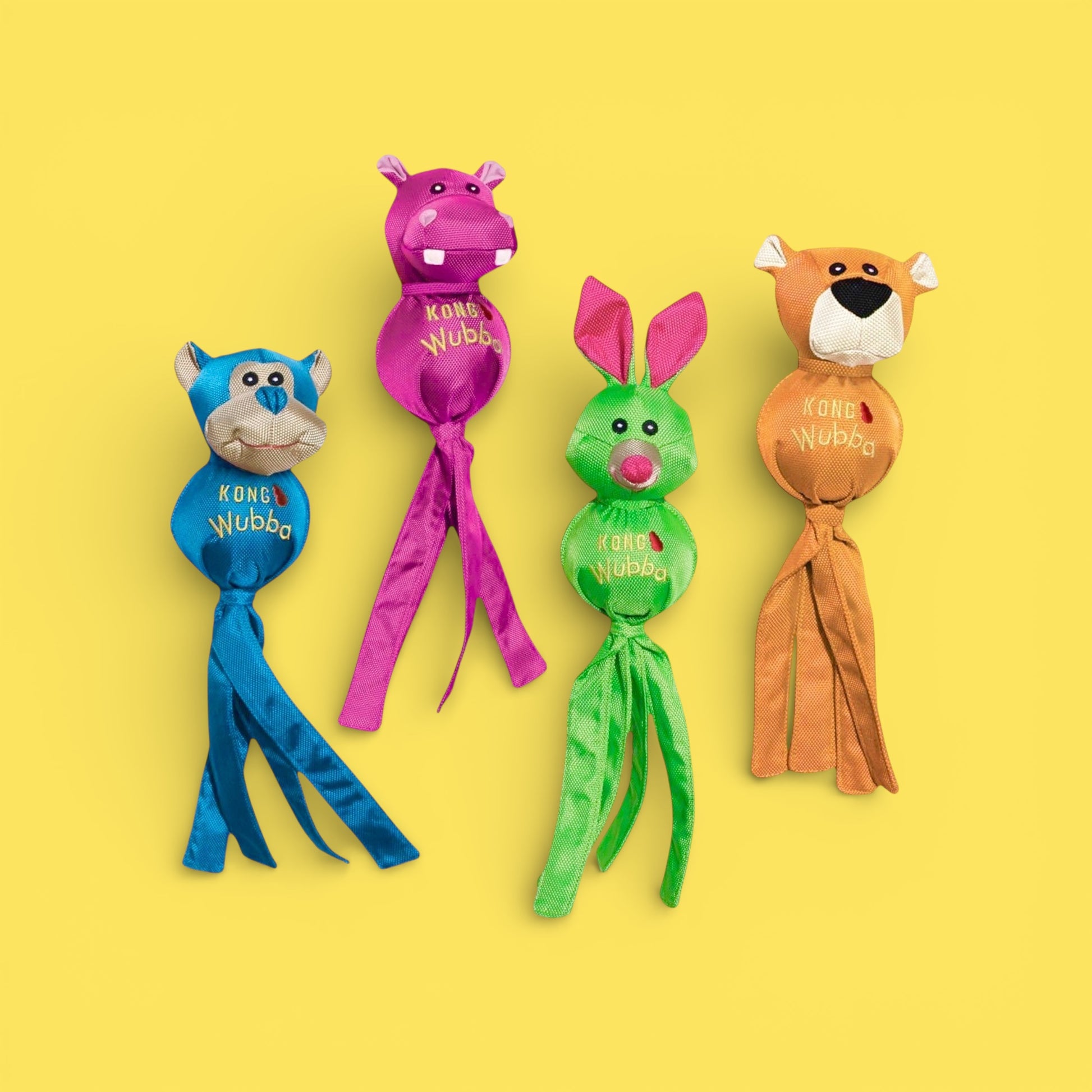 The KONG Wubba Ballistic Friends are the cutest and toughest interactive squeak and shake toys available. These versatile toys are perfect for indoor and outdoor use, and their floppy tails make them easy to pick up and throw. Each toy is covered with durable, reinforced nylon for added toughness.